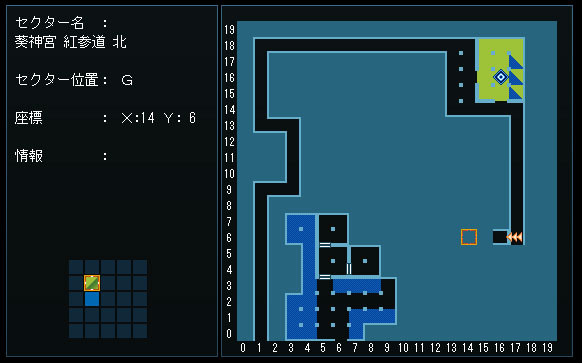 飛んだ先、隣ではなく、『B1F、X:1 Y:7』、二つある南側からワープ。
