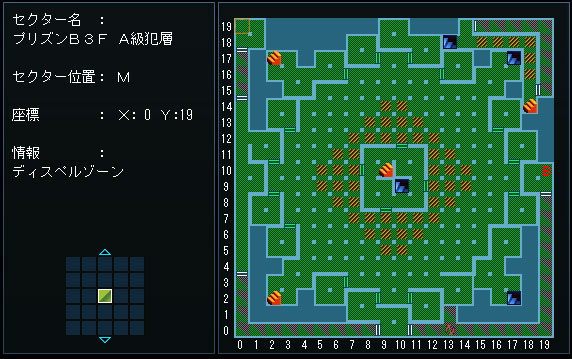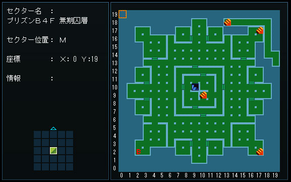 とんだ先、『B1F、X:9 Y:19』でワープ。