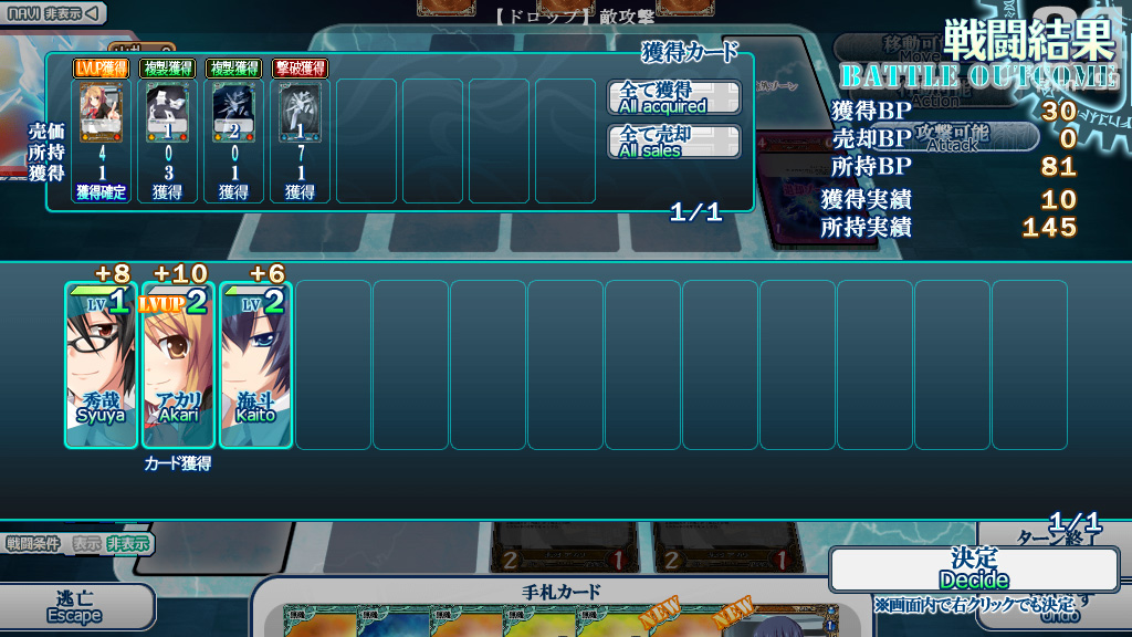 敵のリーダーカード以外のカードを秀哉で倒すことで、そのカードを獲得できる。