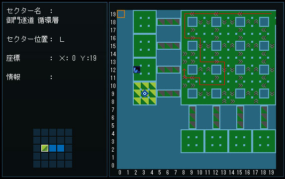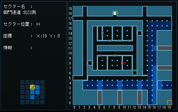 『御門隧道、循環層、X:2 Y:12』でハッチを開け、千代田大本営へ。