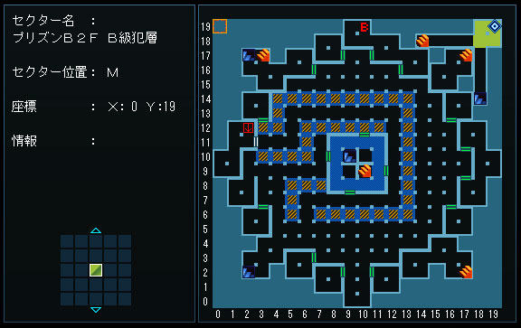 B2Fのベルを押したら、『B2F、X:3 Y:17』から再びB1Fに戻ります。