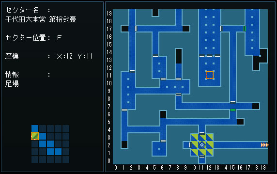 『御門隧道、循環層、X:2 Y:12』でハッチを開け、千代田大本営へ。