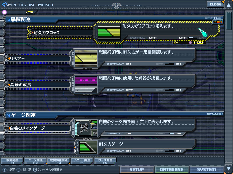 これは、機体性能のレベルアップはもちろん、ゲームそのものを使いやすくしたり、