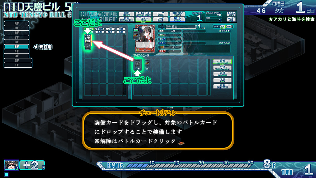 探索時の移動は、緑ラインが探索できる範囲(移動力と思ってOK)