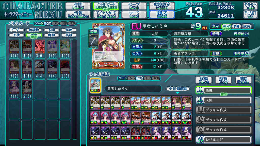 では、クリア時のデッキ。