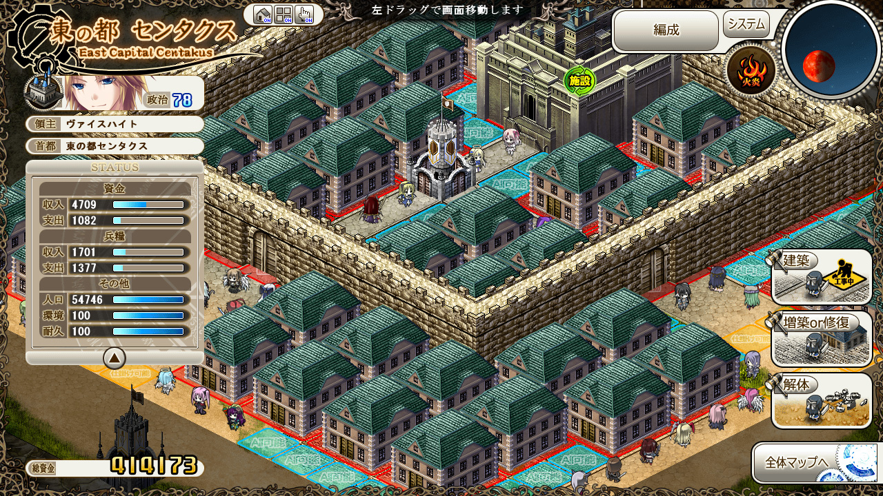 ここに、メルキア住宅Cを建てまくってLv5にしました。