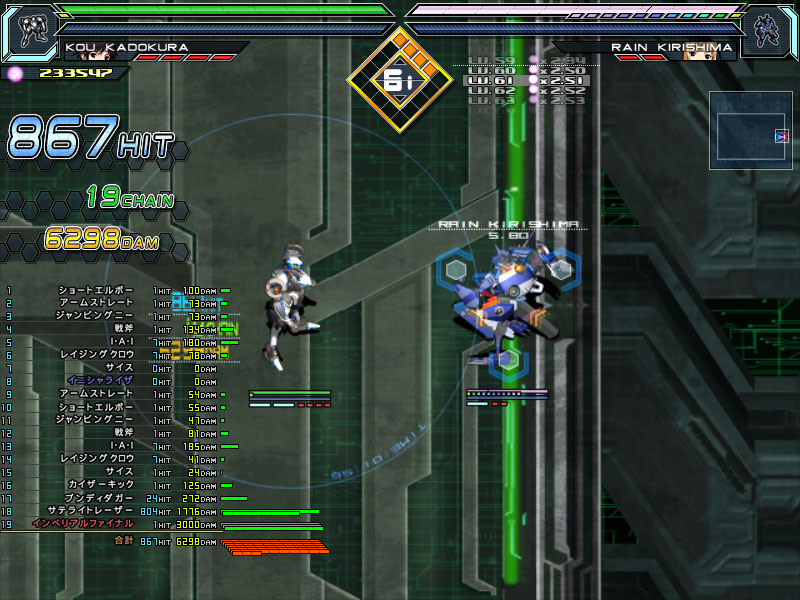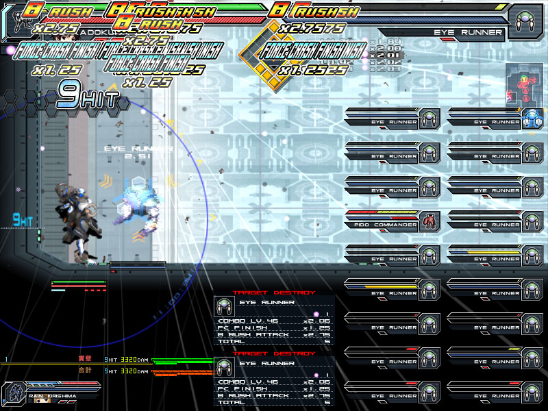 ラッシュは、コンボ中に複数の敵を倒してから計算が始まり、