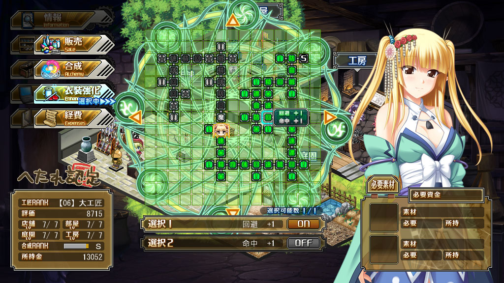 衣装を強化すると、強化したスロットにある『強化値』のどれを選ぶかを決められます。