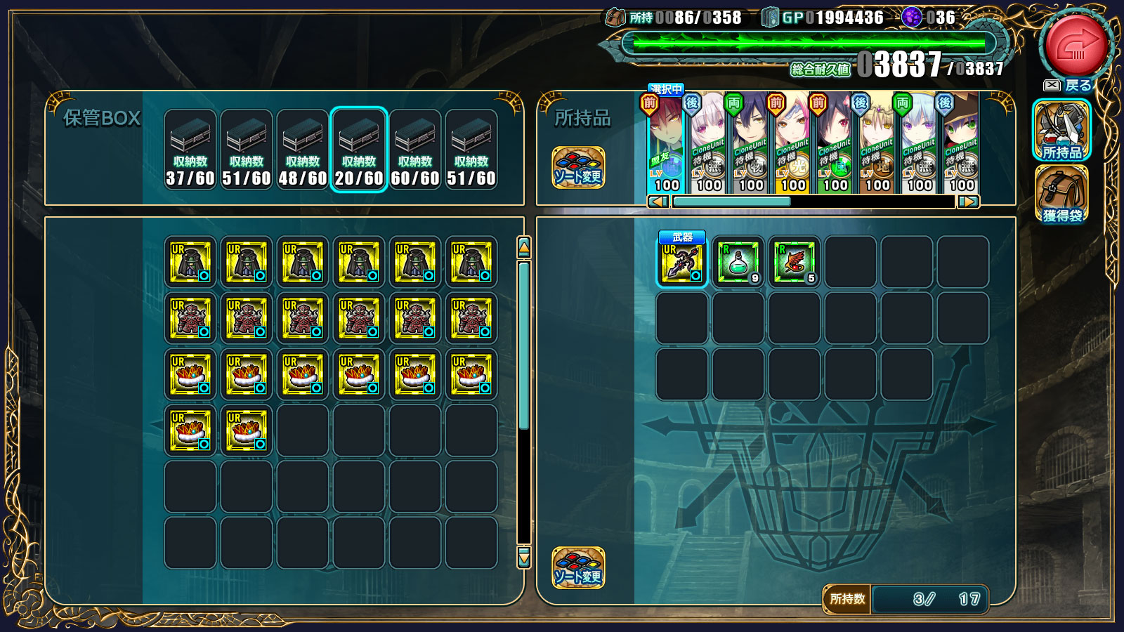 息切れ用に、封瓶や翼はしっかり持たせておきたい。
